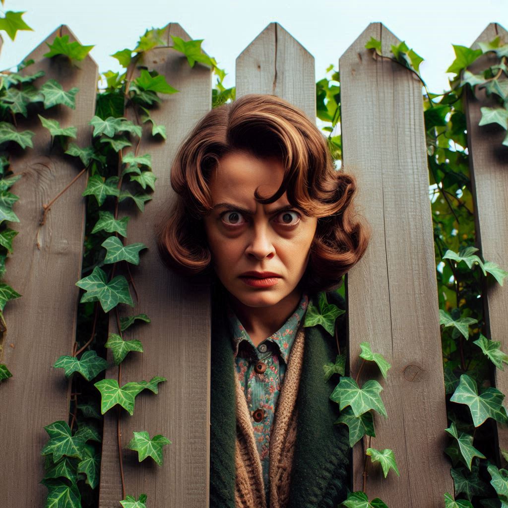 The smell of cheap gin wafts through the door. She stands there, weaving. She tells me how the workers I hired cut down the ivy on her side of the fence. I didn’t really know what to tell her. I explained that I wasn’t here to see what they were doing. I offered to give her their card so she could call them herself. She didn’t really seem to care what I said. She just went on and on about how they had reached over her privacy fence, and cut her ivy down to eye level. She used a little chopping motion with her hand to illustrate this fact.