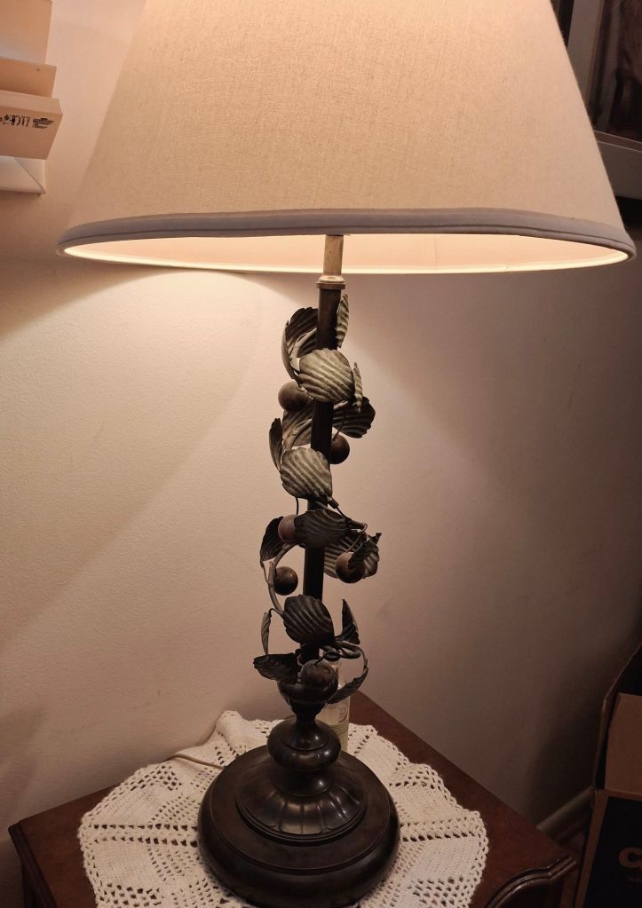 Knowing I was looking for big pieces of furniture, I stuck with local auctions. I didn’t find a curio cabinet right off, but I did find this lamp.